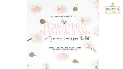 Susan's Period Pro Masterclass helped answer questions I've still had in my 40s! The class helped normalize the subject of menstruation, which is still too often considered taboo. I feel empowered to share this knowledge with my daughter so that she can feel proud of her body and realize that half the world's population goes through the same thing! Susan taught helpful information about the best way for females to eat, sleep, exercise and more. She helped us identify what is normal with our bodies' menstrual cycle, and what qualifies as a red flag - indicating a change may be in order. I highly recommend Susan's Period Pro Masterclass to all girls, women, and any person seeking to understand females better. Sunny M